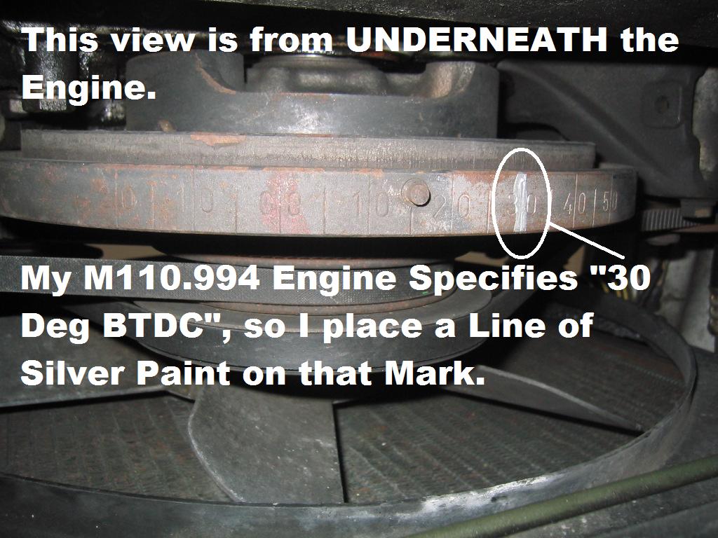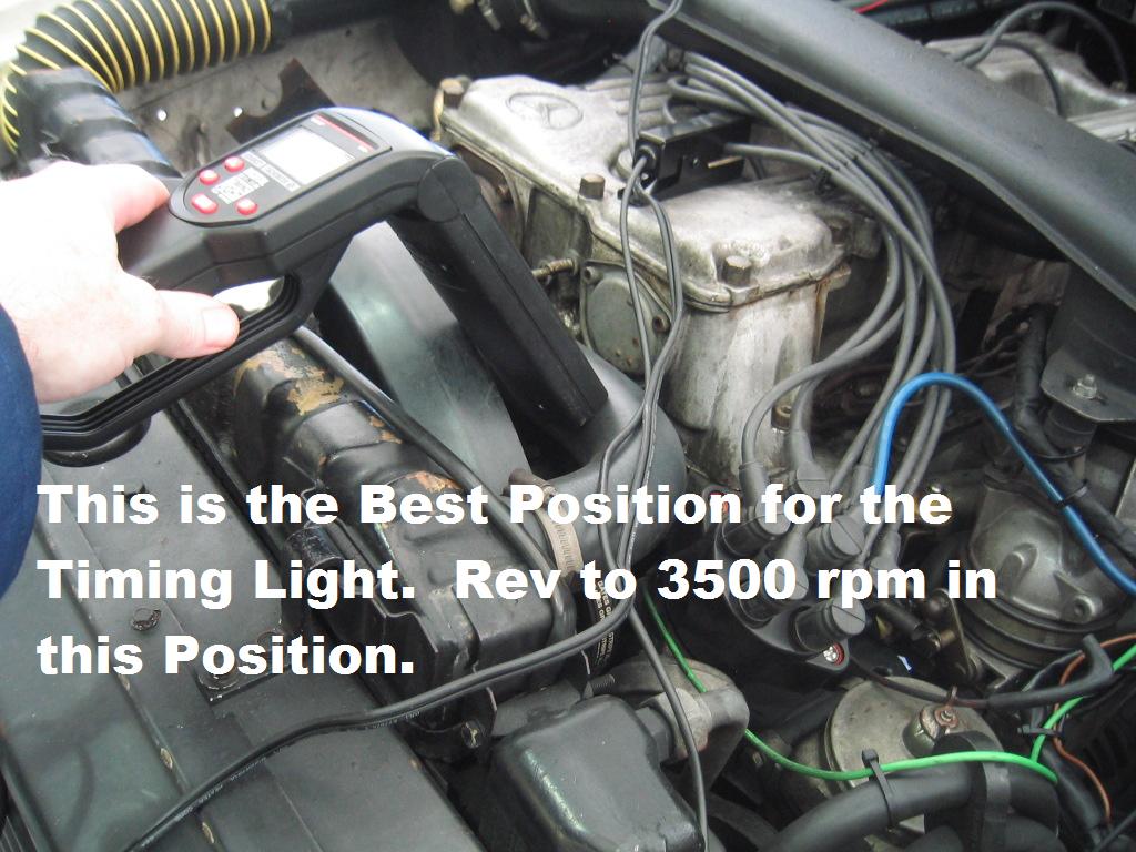 | G-AMG G-Class DIY Host Date registered: May 2006 Location: South Texas Vehicle(s): '04 G55, '80 280GE, '99 S420, '98 E320, 2011 E350 ![]() | Photo DIY- Timing Adjustment for M110.994 Engine Well, it is that time, again, (12,000 Mile Check), and so I did the Valve Adjustment, Spark Plug Change, Compression Check, and Now, the Next Step in the Process is the "Ignition Timing". Looking through the DIY Forum, I notice this procedure is not included, so I will "Vet" the post here. Please use extreme care, as the Engine is HOT for this step.... and be VERY VERY careful around any Electrical Components. I'm very Skidish around electricity, so I do the "Distributor Manipulation" with the engine OFF, making very small adjustments. Remember to "Rev" the engine several times in between each adjustment. (1.jpg) (2.jpg) (3.jpg) (4.jpg) (5.jpg) (6.jpg) (7.jpg) (8.jpg) (9.jpg) (10.jpg) Attachments ---------------- 1.jpg (87KB - 176 downloads) 2.jpg (129KB - 169 downloads) 3.jpg (100KB - 182 downloads) 4.jpg (97KB - 177 downloads) 5.jpg (131KB - 181 downloads) 6.jpg (106KB - 182 downloads) 7.jpg (129KB - 195 downloads) 8.jpg (147KB - 169 downloads) 9.jpg (97KB - 172 downloads) 10.jpg (102KB - 174 downloads) | ||