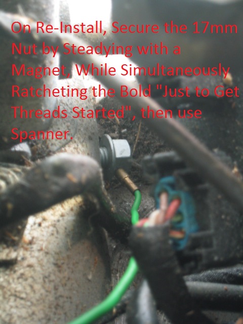 The passenger's side was a bit more fiddly... with a few tries at placing the Flanged Nut into a Box-End-Spanner, and carefully inserting without dropping the nut... I was able to 'Feel' the Bolt end, and get the threads started.... Again, All with one hand in the engine bay, the other in the wheel-well area.