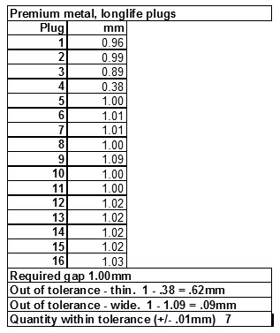 Prudence would say that we should always check the gap before installation. What does the data say we should do? My technique was simple. I took a set of feeler gauges and measured the plug gap and recorded the data on the 16 plugs for my vehicle.