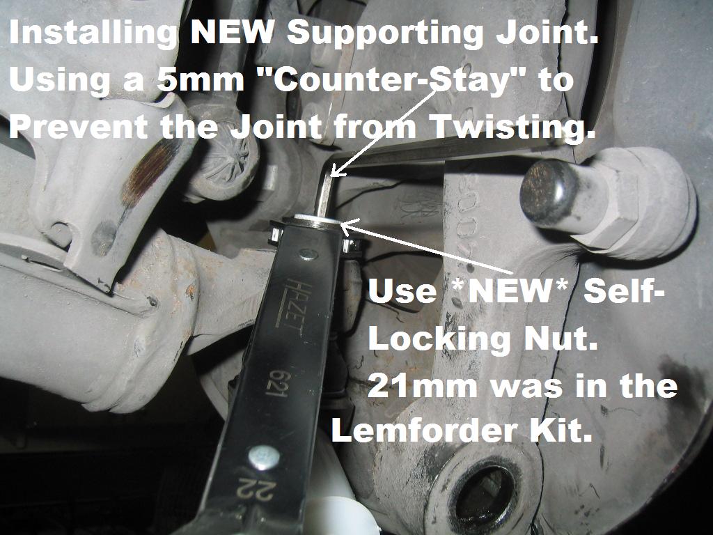 | G-AMG G-Class DIY Host Date registered: May 2006 Location: South Texas Vehicle(s): '04 G55, '80 280GE, '99 S420, '98 E320, 2011 E350 ![]() | Photo DIY- Supporting Joint R/R After noticing a VERY subtle (albeit noticeable) vibration, which my Buttocks felt like it was coming from the Right Front Wheel region. Upon applying a Lever to the Supporting Joint? There is a a 1 mm "play" in the right joint. Translating such a tiny amount of play into "Vibration at 60 mph" is about what I am feeling. Since the Joints are original, and have 18 years, and 183,000 miles of Rough, Lousy, roads on them?? I felt I would simply change them out. After the Change? The Vibration I was feeling?? GONE!!! I went with Lemforder brand, which seems to be the Go-To Brand for Suspension parts. The Post is merely a Color Photo Regurgitaion of WIS. No cutesie tricks. I'm sure there are lots-o-other-ways of performing the change, without any of the MB specified tools. I am simply going "by-the-book". *IMPORTANT NOTE*!! If you are performing the joint change with the Springs Installed?? The Shock-Absorber *MUST* be Installed. As ALWAYS, work *SAFELY*!! G (1.jpg) (2.jpg) (3.jpg) (4.jpg) (5.jpg) (6.jpg) (7.jpg) (8.jpg) (9.jpg) (10.jpg) (11.jpg) (12.jpg) (13.jpg) (14.jpg) Attachments ---------------- 1.jpg (71KB - 221 downloads) 2.jpg (93KB - 222 downloads) 3.jpg (87KB - 212 downloads) 4.jpg (69KB - 225 downloads) 5.jpg (79KB - 227 downloads) 6.jpg (89KB - 216 downloads) 7.jpg (95KB - 227 downloads) 8.jpg (88KB - 219 downloads) 9.jpg (75KB - 211 downloads) 10.jpg (117KB - 219 downloads) 11.jpg (100KB - 228 downloads) 12.jpg (94KB - 217 downloads) 13.jpg (83KB - 210 downloads) 14.jpg (84KB - 242 downloads) | ||