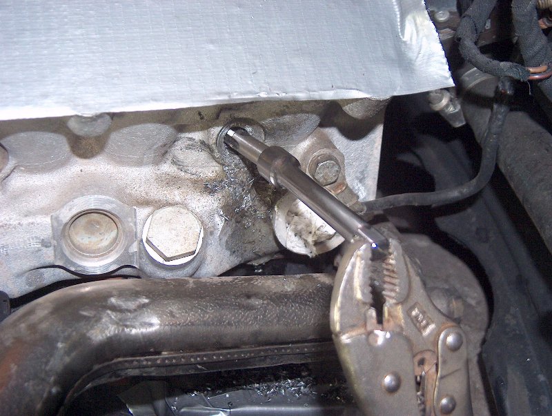 If you make a mistake you will be going to option (A). 1) Remove the glow plug's hex head and center electrode. Vice grips will do nicely. Just tear the off the hex part and then clamp onto the electrode and lever it out. The electrode is a good 4cm long and can be welded in there pretty well. It has to come out for the next steps.
