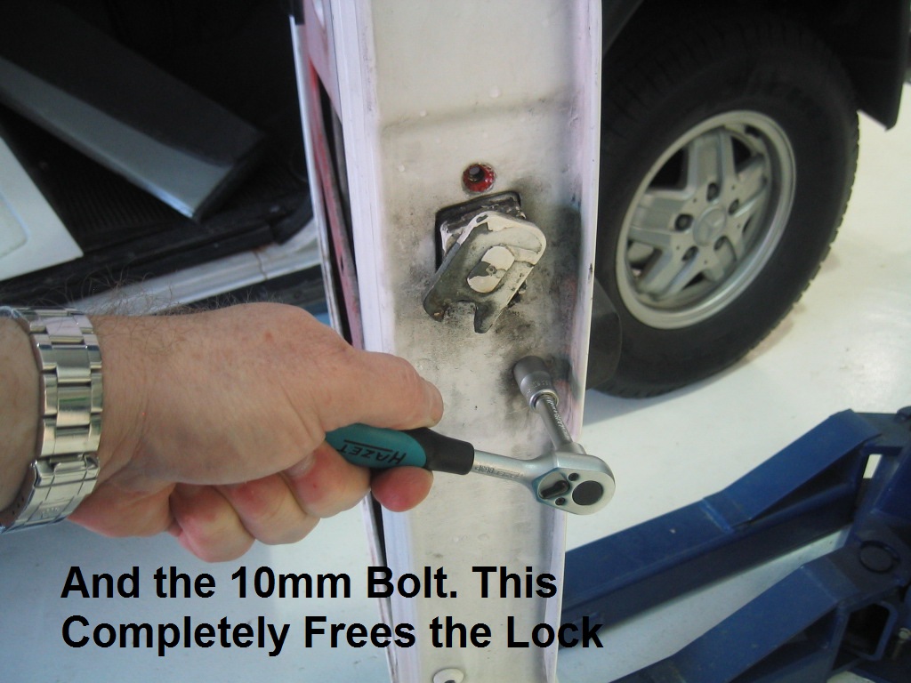 On mine on all doors inner bolts for the outer doorhandle (picture 12.jpg) are dead-jammed as the bolts are completely rusted.