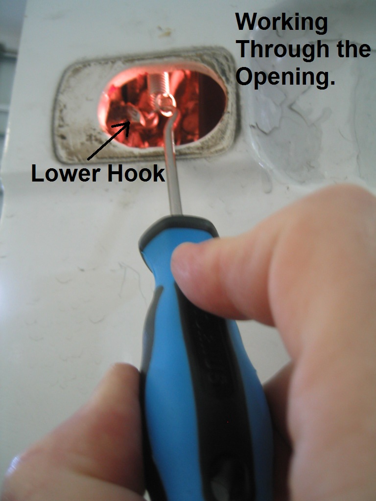 I'll try to attach my pic to this submission at the correct size. The spring at the top of the pic that goes horizontally is the one that broke on my latch and I "rewound" the right end of it as you can see in the pic.