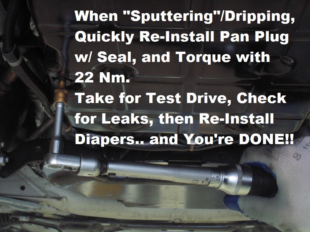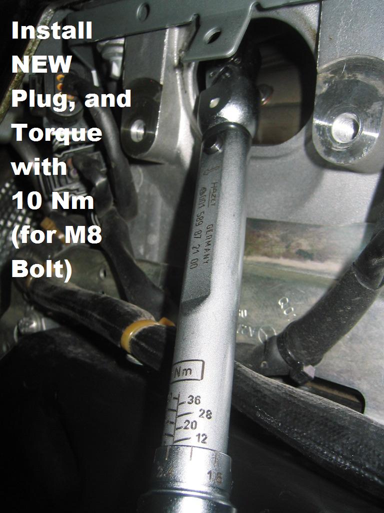 | biancoMB New user Date registered: May 2014 Location: San Jose, CA Vehicle(s): '10 E350 CP Posts: 1 | Re: Photo DIY- 722.905 "7G Tronic" NAG 2+ Transmission Oil/Filter Change Great DIY write up and photos! Question; After all back together and the extra 1/2 liter is flowing out, is the car running? And is it running when you put the new drain plug in when the flow starts to break up and sputter? I've done trans oil changes on BMW without a dip stick before and the engine needs to be running. Do you know if the 2010 E350 has the same 7 speed as your 2011 E350? | ||
