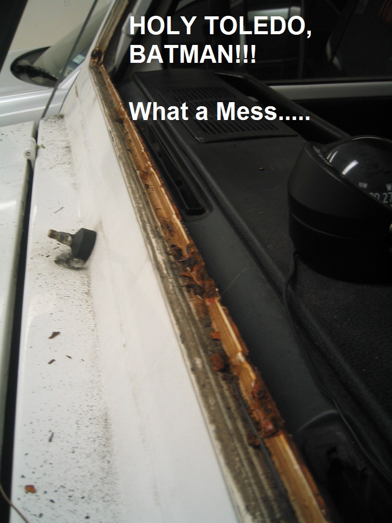 BUT!!! I am not delusional.... I am the first to admit the Bride of Frankenstein is a Rotted Rust Bucket. I don't think there is a panel on her that doesn't have at least some bubbling. I know anything LESS than a complete Off-Frame Re-Do would be like Slapping a Band-Aid onto a Fungating Melanoma...