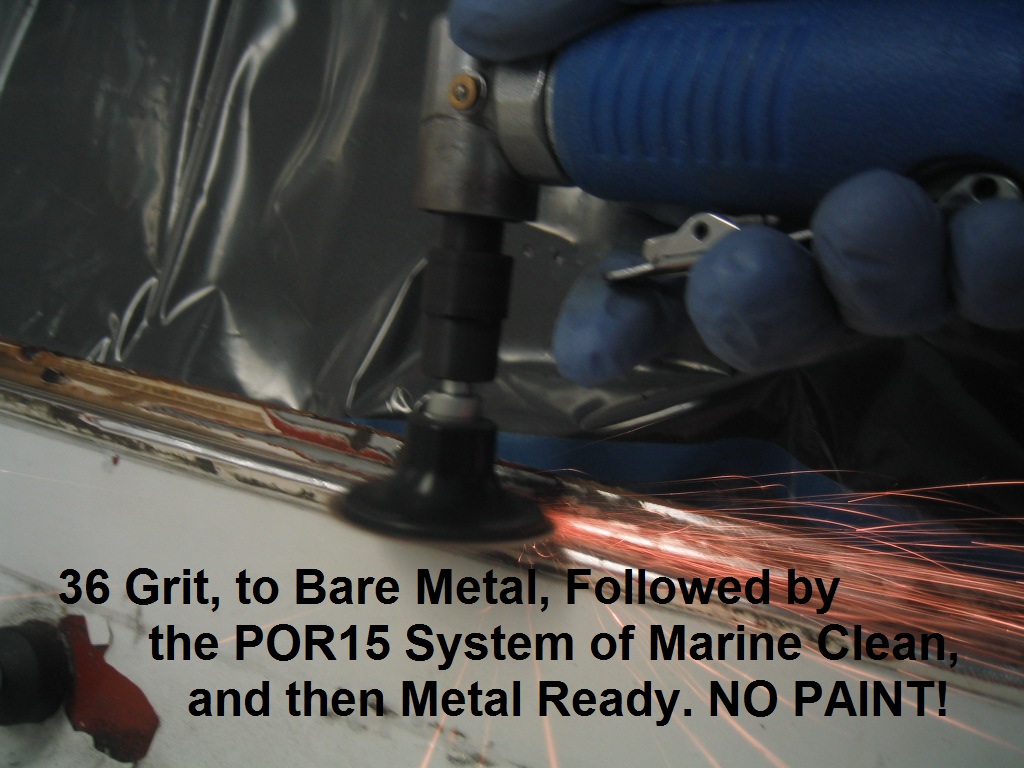 Since I was able to get "most" of the lower frame down to bare metal, with only "small" defects in the "lip" of frame... I thought it might be wiser to KEEP whatever Metal Mass is currently there, POR15 treat the metal, and lay a 90 degree bent 16 Gauge Galvanized ON TOP/IN FRONT OF the lower lip as a form of "Re-enforcement" rather than a "Replacement".