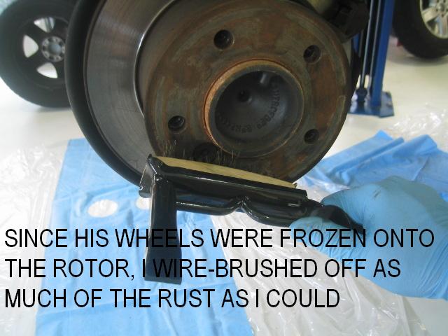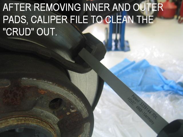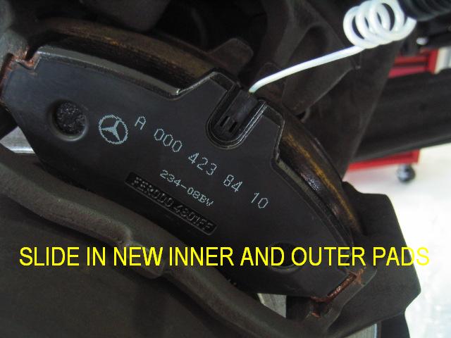 | G-AMG G-Class DIY Host Date registered: May 2006 Location: South Texas Vehicle(s): '04 G55, '80 280GE, '99 S420, '98 E320, 2011 E350 ![]() | Photo DIY- Rear Brake Pad Change, G500 I volunteered to help a friend of mine out who just bought a '05 G500 CPO truck from the local stealership. Without going into too much detail... I strongly encouraged to have him bring it by for the Temple Monkey to look at... I'm glad I did, as even novice me found lots-O-stuff needing attention. The experience scared the ca-ca out of me.. I will never buy a CPO MB if this is the "seal of approval" Benz considers the industry standard. Besides the Algae in the brake lines, Sludge in the visible engine workings, Brown "mud" in the Differential lines, the list goes on. The reason I am doing this post is the 2 mm of remaining brake material on the rear brakes. How can you release a vehicle with brakes BELOW the service limit??? Since I don't like the idea of squirting dirty, old brake fluid "backwards/upstream", I opted to Bleed the brake system *PRIOR* to doing the pad change, so when I press back the pistons, it is "clean" fluid. See the previous post: http://www.pointedthree.com/disc/forums/showthread.php?tid=12456&po... for the bleeding procedure. PLEASE NOTE! The most Updated WIS specifies the Bleeding Screws are to be torqued to 15 Nm, which is HIGHER than numbers on my post. Be sure you apply the brakes several times to equalize the braking system, BEFORE venturing out onto the roadways.... (1.JPG) (2.JPG) (3.JPG) (4.JPG) (5.JPG) (6.JPG) (7.JPG) (8.JPG) (9.JPG) (10.JPG) (11.JPG) (12.JPG) (13.JPG) Attachments ---------------- 1.JPG (45KB - 174 downloads) 2.JPG (49KB - 154 downloads) 3.JPG (43KB - 152 downloads) 4.JPG (49KB - 163 downloads) 5.JPG (46KB - 157 downloads) 6.JPG (55KB - 158 downloads) 7.JPG (50KB - 180 downloads) 8.JPG (43KB - 172 downloads) 9.JPG (45KB - 163 downloads) 10.JPG (61KB - 146 downloads) 11.JPG (37KB - 154 downloads) 12.JPG (39KB - 159 downloads) 13.JPG (44KB - 172 downloads) | ||