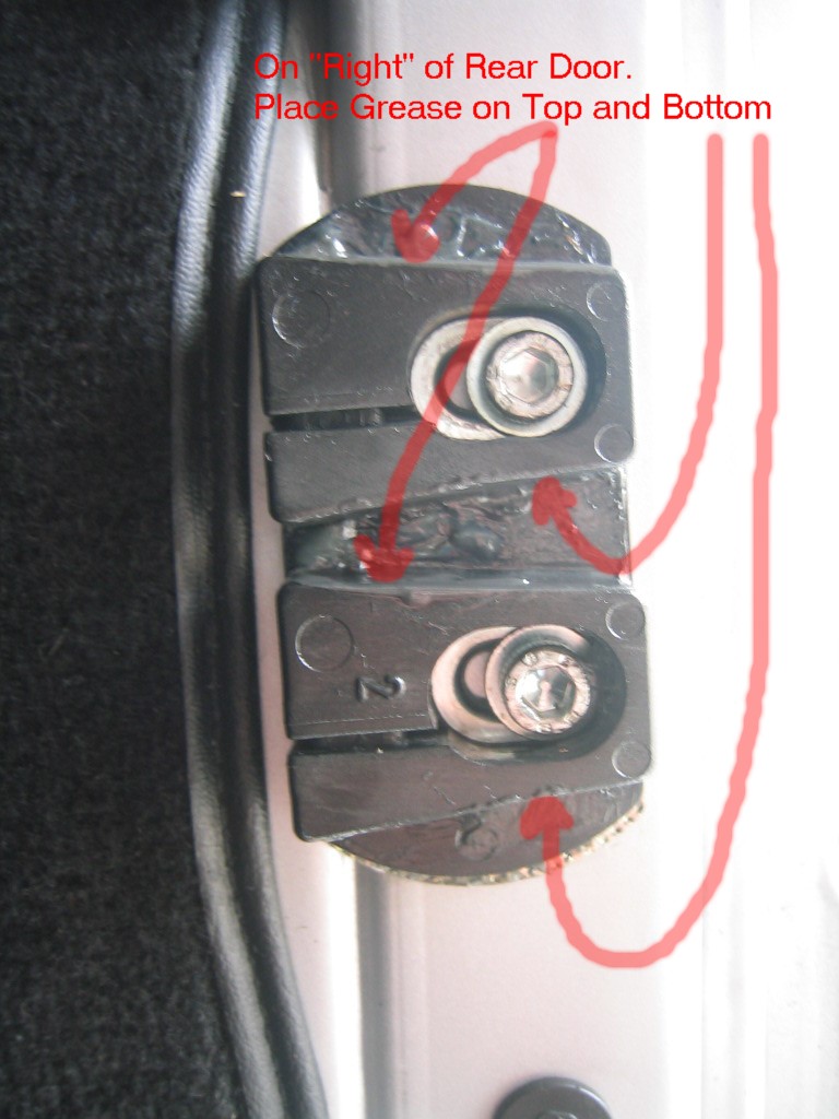| kotton Regular Date registered: Sep 2014 Location: California, Orange County Vehicle(s): 2006 G-500 Posts: 84 ![]() | Re: Photo DIY- Squeeky Door Lube Locations I hate to necro thread the forums, but thank God I found this because my '06 G500 sounded like the flying dutchman since Ive purchased it. I bought this lube for $70 with free shipping from ebay and now the Gwagon is completely silent! | ||