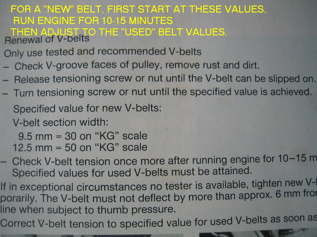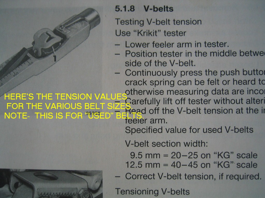 JUST TO CLARIFY, THIS PROCEDURE IS FOR THE "OLD" STYLE V-BELTS, AND THIS EXAMPLE WAS ON A M110 ENGINE!! WITH A DIAVIA AIR CONDITIONER.