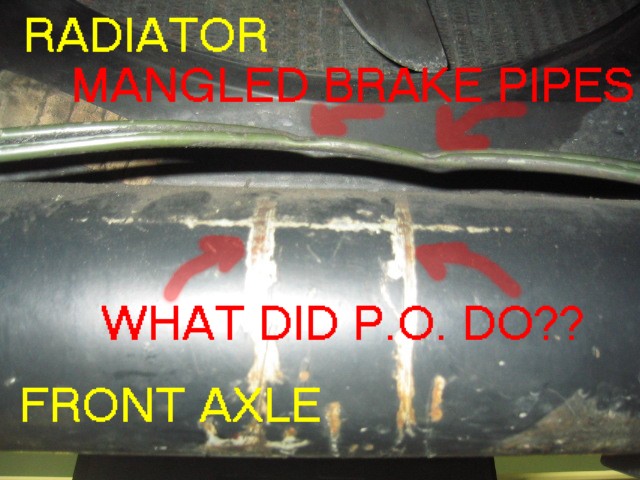 While doing my Calipers, I had a "closer" look at the brake system. Well, up above the front axle (kind of hidden from view" were some twisted/mangled brake pipes. It looks like something scraped up along the axle and caught the brake pipes. Granted, I've never felt any asymmetric braking symptoms, I felt more comfortable just changing the two pipes out..... BIG MISTAKE!!!!!!!!!!!!!!!