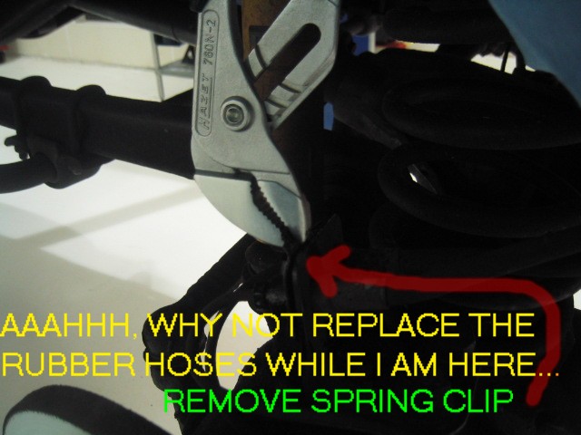 The "third" portion of the post is replacing my "tired" looking Rubber Brake hoses. Yes, I know I "might" have placed them kidywhompus, but MY theory was: