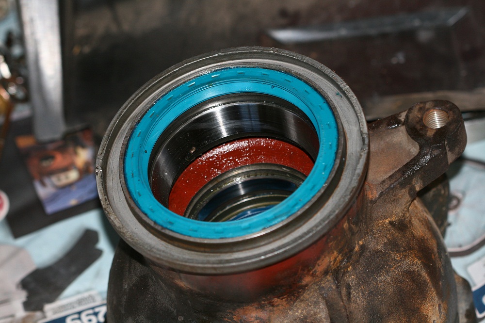 2. Inner wheel bearing Next I fitted the outer bearing race of the inner bearing to the joint housing. Again using the techniques described above for fitting the outer bearing race. Make sure the thinner part of the bearing race faces the inner seal (A015 997 99 47). Fit the second half of the inner wheel bearing to the race and then fit the inner seal (A015 997 99 47). In this picture, what did I not put in before the seal?