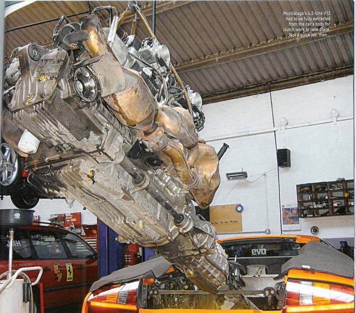 | GG AD 600 Date registered: Dec 1899 Location: Vehicle(s): | Re: I Love My SLK, But Oh, You Lambo!!! Shinigami - 6/6/2006 6:09 PM Too bad the clutches don't last all that long. One guy has gone through about 3 of them so far on his Murcie. In the space of 15,000km's... And those clutches are NOT cheap. And you know why ??The whole engine needs to be taken out of it´s bay for clutch replacement.... In EVO magazine is a long term test of the Lambo Murciélago. After 26.000 miles the clutch needed to be replaced with 2650 pounds only for the clutch plate...If you like racing away from stop lights a Murciélago will probably eat a clutch every 5000 miles. Here´s a pic of "regular maintenance" work... (Scannen.jpg) Attachments ---------------- Scannen.jpg (96KB - 240 downloads) | ||