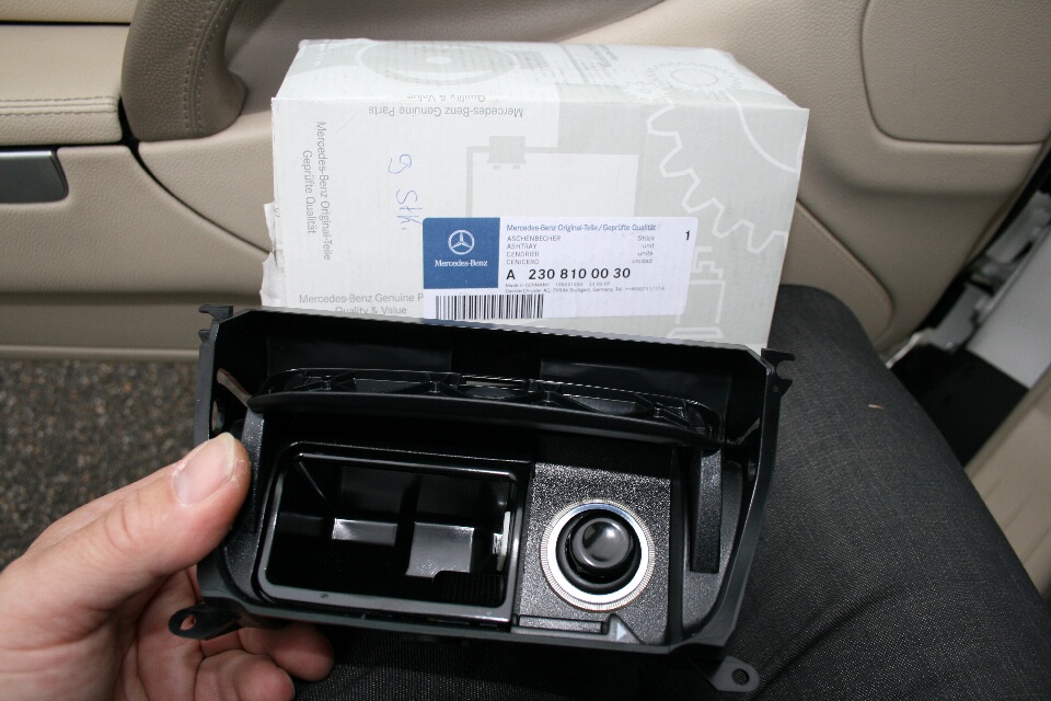 | pleubner Date registered: Apr 2006 Location: Basel, Switzerland Vehicle(s): ML270CDI Brabus-W163,SL55 AMG-R230,ML320 CDI-W164 ![]() | 11. New Ashtray The new ashtray comes as a complete unit. At 45 Euro's (approx 40 Dollars) a good deal!.