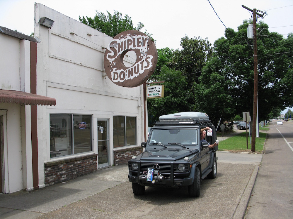 Greenville,MS...double pane, bullet proof glass with a little hole to pass your money through....pretty sure it was a rough part of town. Karl wanted Starbucks when we were approaching the Mississippi River....the closest one was 120 miles south in Jackson.  At that point Karl realized we weren't in Southern California anymore.