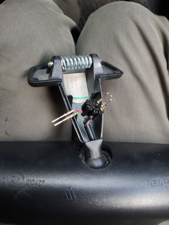 Here's a pic with the wires pulled from the plug housing. The green is the lower one that was on it own away from the other wires and the red light wire had a reddish brown color (I'm color blind), and was the first one in the group of four wires closest to the solitary green light wire.