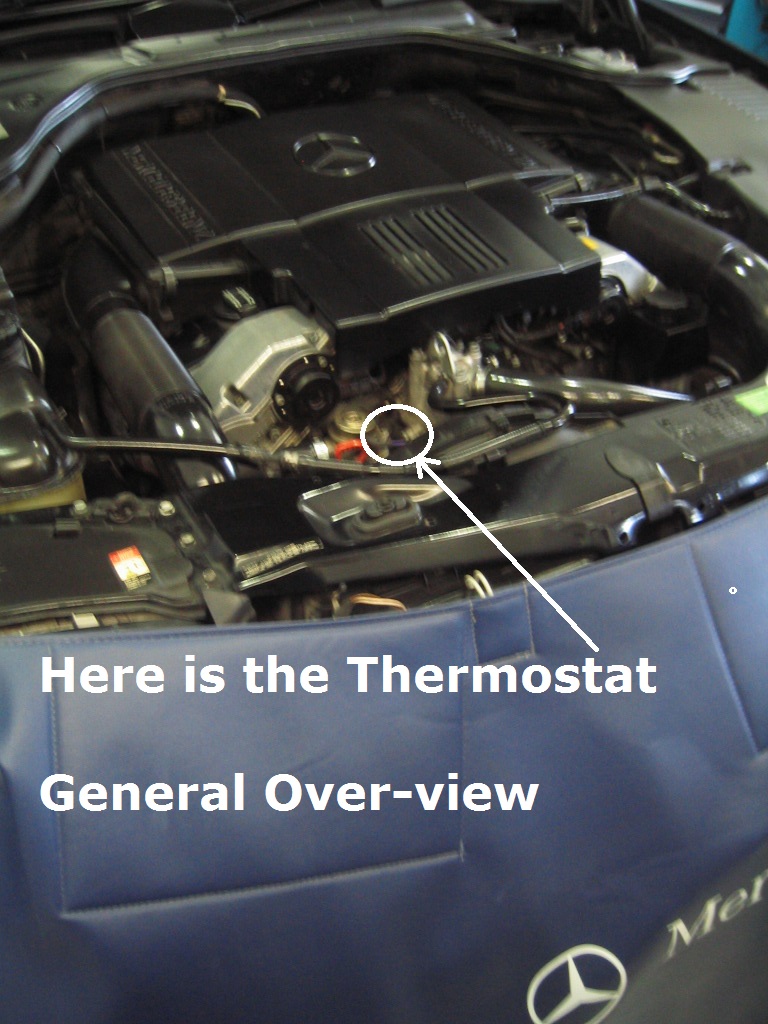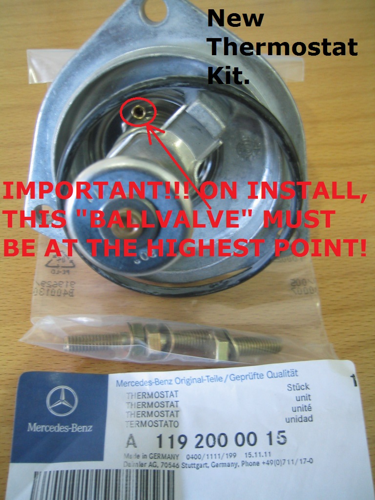 | G-AMG G-Class DIY Host Date registered: May 2006 Location: South Texas Vehicle(s): '04 G55, '80 280GE, '99 S420, '98 E320, 2011 E350 ![]() | Photo DIY- Thermostat R/R Well, it looks like after 164,000 miles, the Thermostat gave up the ghost... Granted, we don't get very much cool weather... so it is hard to say WHEN it died... Diagnosis? During a cool spell (upper 40's), I noticed a very slow "Warm-Up" period... "Hmmmm", says I... "I've driven 4 miles now, it 'should' be above 80C at this point, cool weather or not....." "Double-Hmmmmmm... I've driven 35 miles now... and it is STILL at 74C" OK, Stuck Thermostat... A Big surprise, to me, what a PAIN in the Catukus a simple thermostat is to change... Not exacty the "15 minute Special" which I was expecting. Since I was due for my "2-Year" Coolant change interval, it was a perfect opportunity to kill 2 birds with one stone. If you are not doing an entire coolant change, then you will need to drain the Radiator Stopcock in order to replace the thermostat. For more detailed instructions, please see this post: http://www.pointedthree.com/disc/forums/showthread.php?tid=14475&po... Of course, working on a COOL Radiator system will prevent getting yourself scalded. G (1.jpg) (2.jpg) (3.jpg) (4.jpg) (5.jpg) (6.jpg) (7.jpg) (8.jpg) (9.jpg) (10.jpg) (11.jpg) (12.jpg) (13.jpg) (14.jpg) (15.jpg) (16.jpg) (17.jpg) (18.jpg) (19.jpg) (20.jpg) Attachments ---------------- 1.jpg (235KB - 220 downloads) 2.jpg (194KB - 222 downloads) 3.jpg (190KB - 217 downloads) 4.jpg (208KB - 210 downloads) 5.jpg (199KB - 218 downloads) 6.jpg (192KB - 218 downloads) 7.jpg (324KB - 224 downloads) 8.jpg (309KB - 219 downloads) 9.jpg (246KB - 221 downloads) 10.jpg (252KB - 208 downloads) 11.jpg (181KB - 201 downloads) 12.jpg (200KB - 205 downloads) 13.jpg (291KB - 228 downloads) 14.jpg (224KB - 208 downloads) 15.jpg (223KB - 212 downloads) 16.jpg (236KB - 202 downloads) 17.jpg (210KB - 214 downloads) 18.jpg (188KB - 206 downloads) 19.jpg (244KB - 240 downloads) 20.jpg (225KB - 215 downloads) | ||