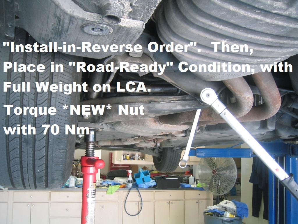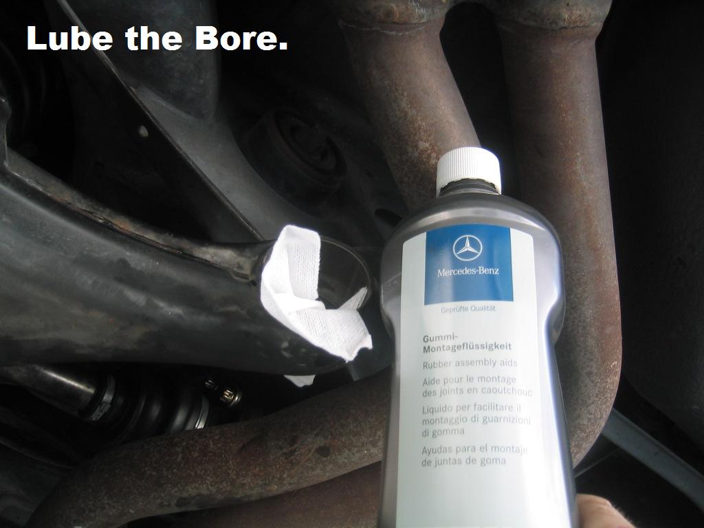 | G-AMG G-Class DIY Host Date registered: May 2006 Location: South Texas Vehicle(s): '04 G55, '80 280GE, '99 S420, '98 E320, 2011 E350 ![]() | Photo DIY- Rear LCA "Inner" Bushing R/R *ON VEHICLE* Per my previous posts, I have done MOST of the Rear-End Suspension. Therefore, I opted to just Finish the Rear-end, and call it a day. The "INNER" Metal-Clad Bushing of the Lower Control Arm is VERY Tightly Afixed, so you will require a good-quality Press/Pulling Set-Up, whether it be Home-Brewed, or Commercially available. I am not going to go into the particulars of the actual set-up I used, as it is a Mixture of different sets. Please Note!!! The Factory Procedure specifies, Complete REMOVAL of the LCA, and R/R the Metal Clad Bush using a Hydraulic Press. For that procedure, please refer to my next post, which shows the "OFF VEHICLE" rendition of the bush R/R. Since this is NOT a Specified WIS procedure, it is being posted Solely for "Entertainment Value Only" and not as a procedure guide. G (1.jpg) (2.jpg) (3.jpg) (4.jpg) (5.jpg) (6.jpg) (7.jpg) (8.jpg) (9.jpg) (10.jpg) Attachments ---------------- 1.jpg (88KB - 226 downloads) 2.jpg (100KB - 210 downloads) 3.jpg (114KB - 211 downloads) 4.jpg (127KB - 209 downloads) 5.jpg (93KB - 213 downloads) 6.jpg (107KB - 238 downloads) 7.jpg (72KB - 206 downloads) 8.jpg (133KB - 214 downloads) 9.jpg (104KB - 222 downloads) 10.jpg (138KB - 203 downloads) | ||