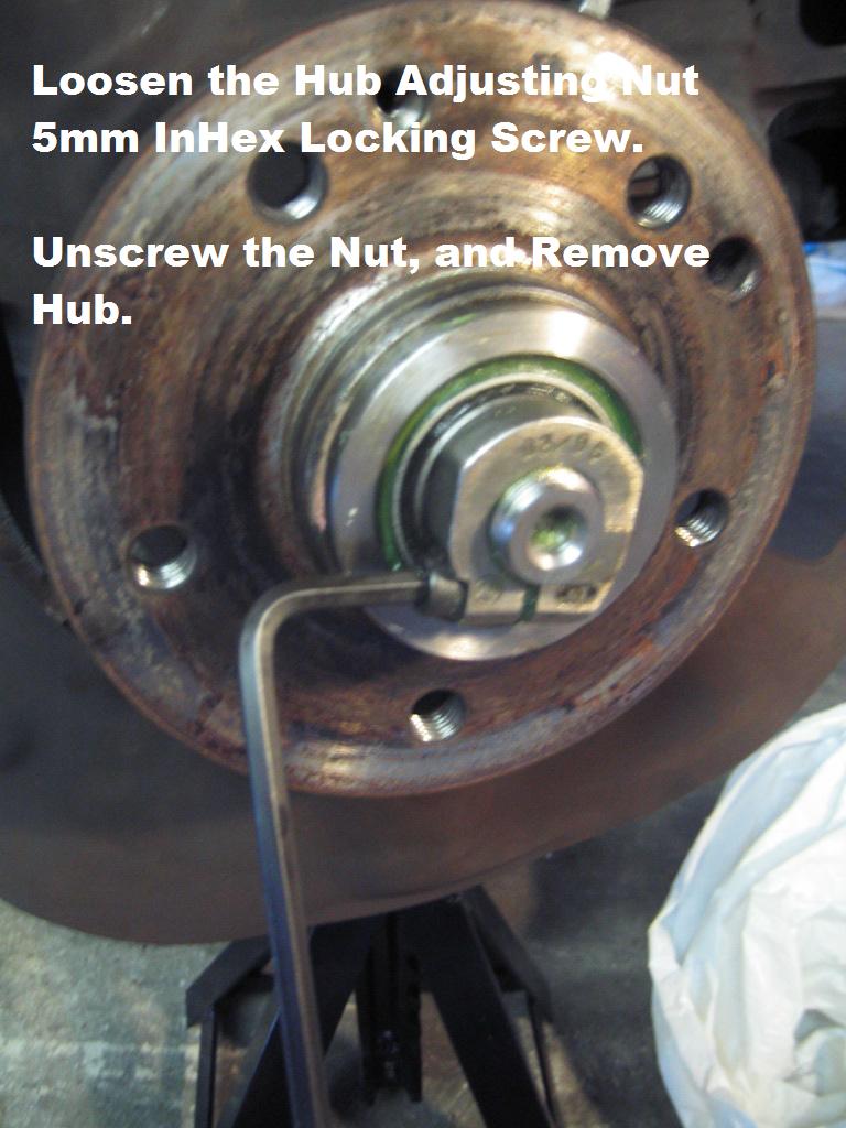 Please see my "Front Brake Overhaul" Post for the Disassembly of the Calipers/Rotors, to get you to the Level of the Hub Job.
