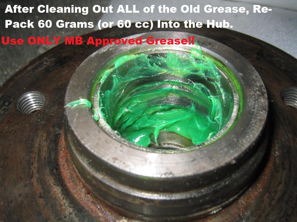One 150 Gram tube of Mercedes Grease, and new Inner Seals are all that is required (assuming the bearings are OK... which a vast majority of the time, they ARE!).