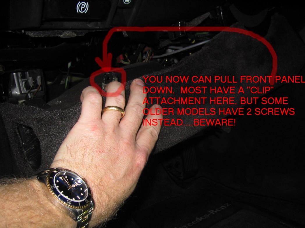 | G-AMG G-Class DIY Host Date registered: May 2006 Location: South Texas Vehicle(s): '04 G55, '80 280GE, '99 S420, '98 E320, 2011 E350 ![]() | PHOTO DIY- UNDER-DASH REMOVAL HI, HERE'S THE SECOND HALF OF THE CRUISE CONTROL SWITCH REMOVAL. IT REQUIRES PULLING THE UNDER-PORTION OF THE DASH. PLEASE NOTE, SOME YEARS HAD A 2 SCREWS, RATHER THAN MY "CLIP" ATTACHMENTS. THE SCREWS ARE APPARENTLY "HIDDEN" BY THE CARPETED MATERIAL AT THE PLASTIC/CARPET JUNCTION, ON EITHER SIDE OF THE STEERING COLUMN. PULL DOWN THE CARPET A BIT, TO FIND. (1.JPG) (2.JPG) (3.JPG) (4.JPG) (5.JPG) (6.JPG) (7.JPG) (8.JPG) Attachments ---------------- 1.JPG (137KB - 171 downloads) 2.JPG (108KB - 163 downloads) 3.JPG (150KB - 171 downloads) 4.JPG (142KB - 162 downloads) 5.JPG (206KB - 182 downloads) 6.JPG (182KB - 165 downloads) 7.JPG (145KB - 161 downloads) 8.JPG (184KB - 164 downloads) | ||