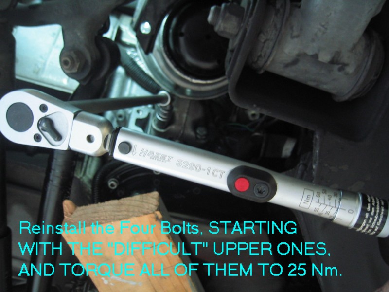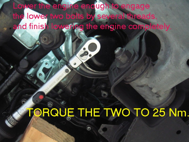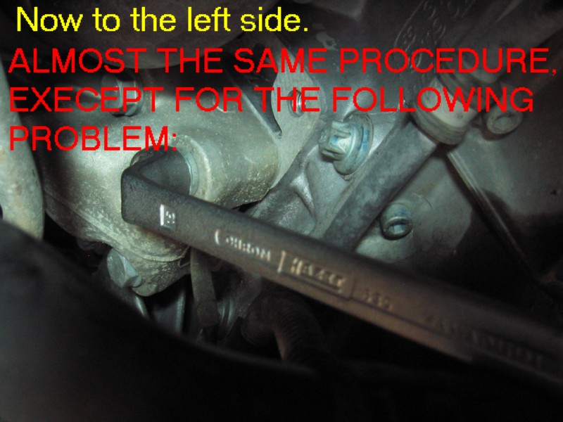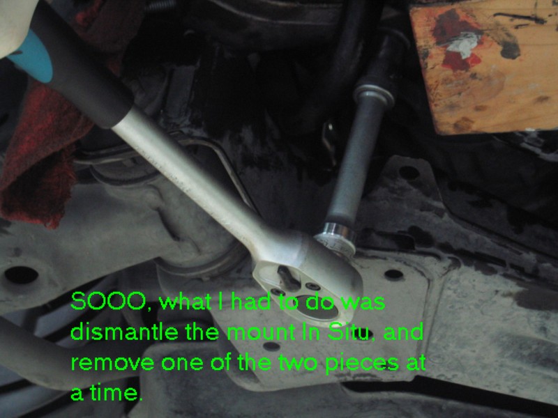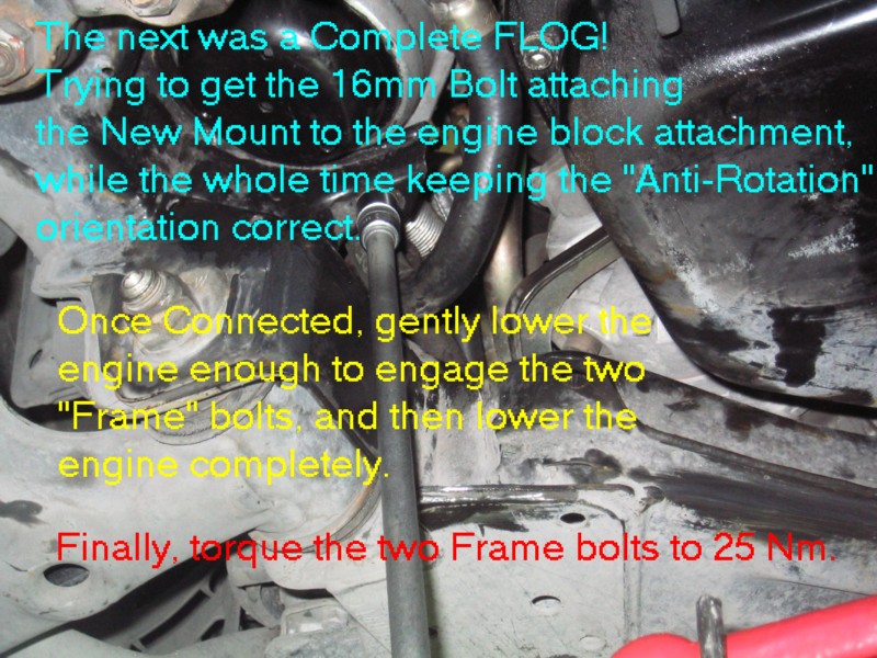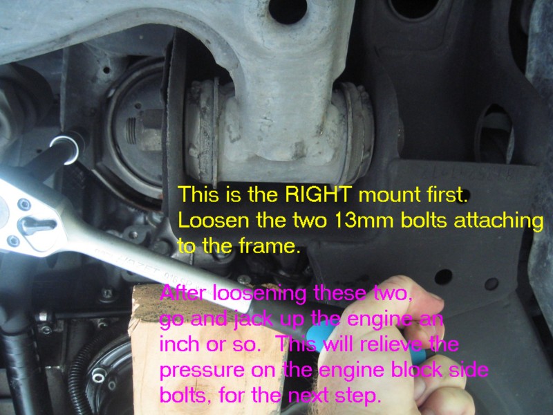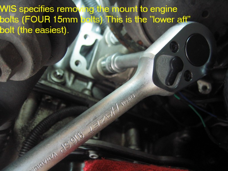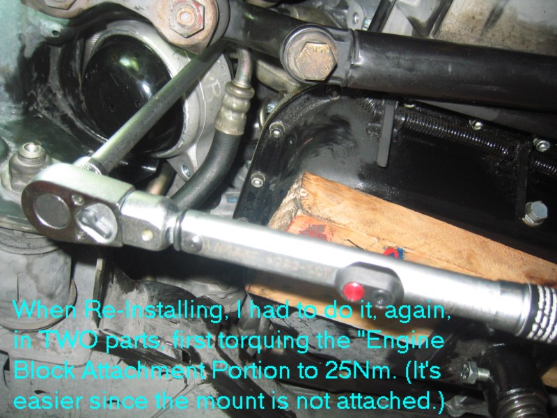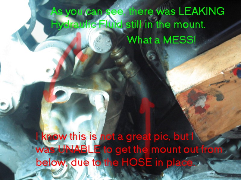 | G-AMG G-Class DIY Host Date registered: May 2006 Location: South Texas Vehicle(s): '04 G55, '80 280GE, '99 S420, '98 E320, 2011 E350 ![]() | Photo DIY- Engine Mount Replacements. Greets, Hmmmm, what are the chances that my E and S klasse engine mounts could fail withing a One month period, and within a thousand miles of one another. The usual symptoms, smooth idle, until you put it into gear, then a vibration. You can "prove" the diagnosis by: (popping open the hood, have someone apply the service AND foot brakes, all the while pointing the car in a "SAFE" DIRECTION, have the helper gently "REV" the engine on and off, all the time looking at how much Rotational "movement" there is in the engine. You will know what "excessive" is. Mine was "Rockn' and Rolln' " SEVERAL inches up and down. YEP!! BAD ENGINE MOUNTS! I followed the WIS, and actually REGRET IT! It specifies removing the ENTIRE Engine Mount, (both the engine mount AND the portion that connects it to the engine block. This worked FINE on the RIGHT mount, but on the LEFT, a hose prevented taking the thing out/or installing, in one piece. This required a combination "Bottom-Side" and "Top-Side" approach. In retrospect, I would have done the job a'la W210 style, of just removing the mount, and leaving the "engine block" mount intact. Anyway, I still had FUN (other than making a MESS with the left leaking mount!). The usual CYA blah, blah stuff. I am not claiming any expertise. I make no bones about it, I am a novice mechanic. My projects are based on my interpretation of the WIS procedures, and/or outside sources. Do work at your own discretion. (1.JPG) (2.JPG) (3.JPG) (4.JPG) (5.JPG) (6.JPG) (7.JPG) (8.JPG) (9.JPG) (9A.JPG) (9b.JPG) (9c.JPG) (9d.JPG) (9E.JPG) (9f.JPG) (9G.JPG) (9H.JPG) (9I.JPG) (9J.JPG) (9k.JPG) (9l.JPG) (9m.JPG) (9n.JPG) (9O.JPG) Attachments ---------------- 1.JPG (110KB - 164 downloads) 2.JPG (141KB - 153 downloads) 3.JPG (123KB - 138 downloads) 4.JPG (100KB - 138 downloads) 5.JPG (103KB - 164 downloads) 6.JPG (112KB - 156 downloads) 7.JPG (113KB - 160 downloads) 8.JPG (96KB - 164 downloads) 9.JPG (103KB - 162 downloads) 9A.JPG (79KB - 138 downloads) 9b.JPG (128KB - 147 downloads) 9c.JPG (92KB - 163 downloads) 9d.JPG (99KB - 158 downloads) 9E.JPG (100KB - 158 downloads) 9f.JPG (113KB - 160 downloads) 9G.JPG (99KB - 154 downloads) 9H.JPG (99KB - 169 downloads) 9I.JPG (123KB - 162 downloads) 9J.JPG (92KB - 162 downloads) 9k.JPG (139KB - 146 downloads) 9l.JPG (173KB - 143 downloads) 9m.JPG (104KB - 150 downloads) 9n.JPG (85KB - 146 downloads) 9O.JPG (56KB - 145 downloads) | ||