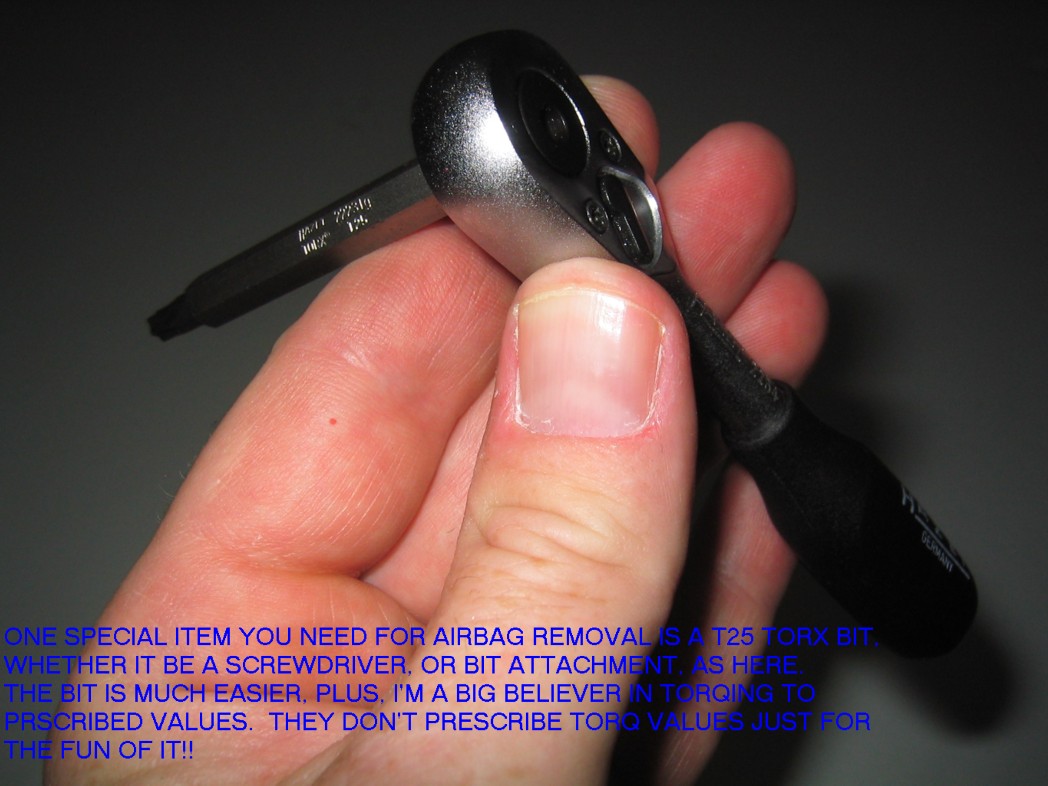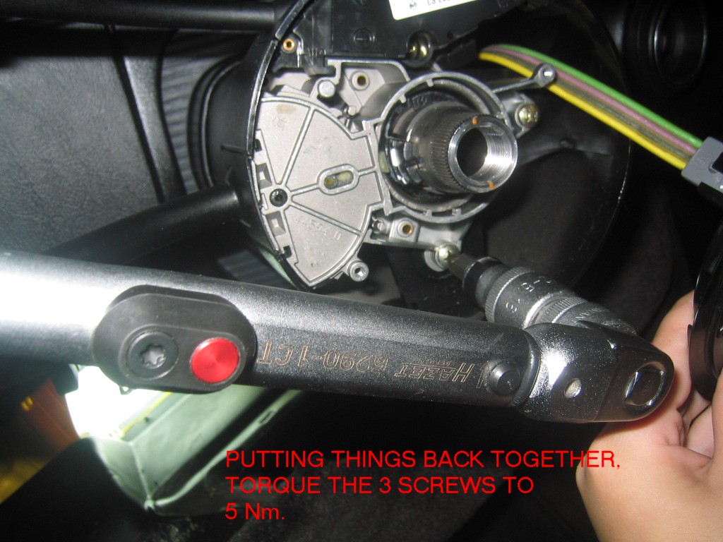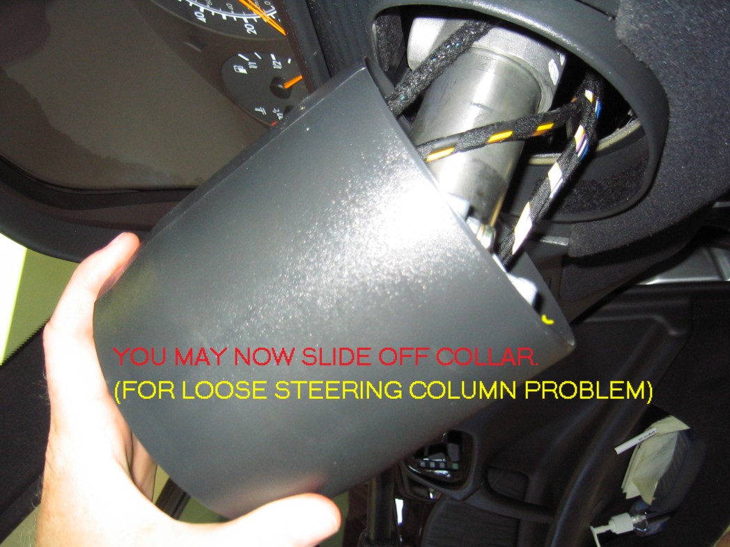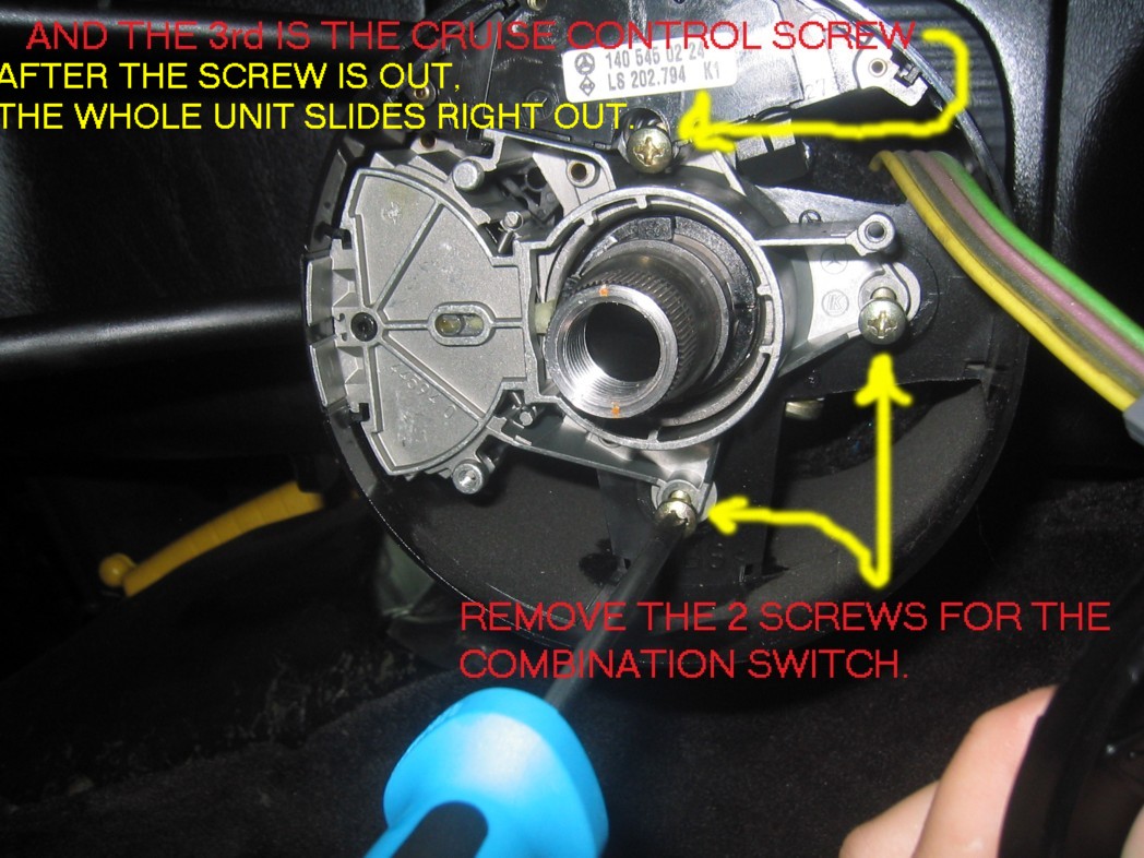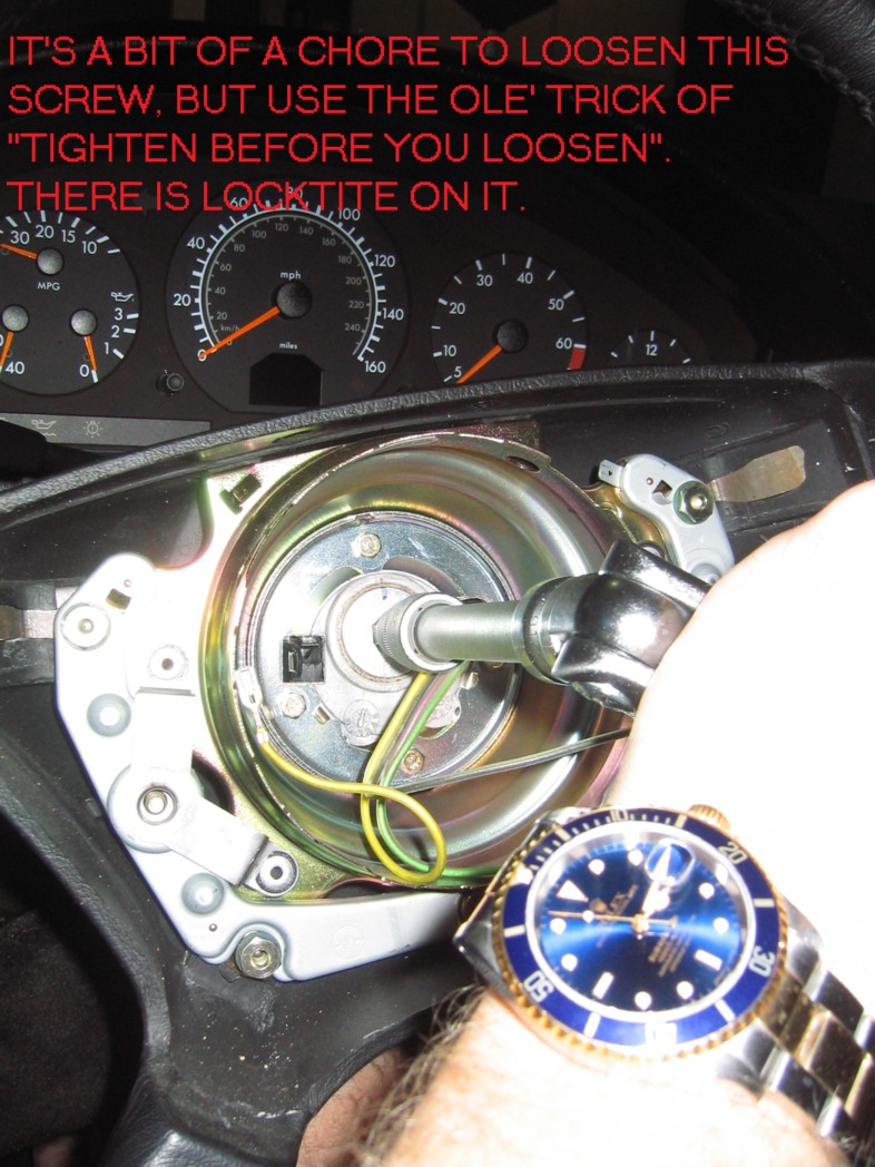 | G-AMG G-Class DIY Host Date registered: May 2006 Location: South Texas Vehicle(s): '04 G55, '80 280GE, '99 S420, '98 E320, 2011 E350 ![]() | PHOTO DIY- STEERING WHEEL REMOVAL - PART I GREETINGS ALL. SINCE MY LITTLE ONE BROKE MY CRUISE CONTROL ARM, I NEEDED TO REPLACE. THIS FIRST PART IS STEERING WHEEL REMOVAL. IN A LATER POST, I'LL SHOW YOU THE DASH DISASSEMBLY. I WENT AHEAD AND PHOTO DOCUMENTED THE AFFAIR, FOR ALL TO SEE, JUST IN CASE YOU NEEDED TO REMOVE YOURS. I INCLUDED THE EXTRA BITS TO TIGHTEN THE CONTROL COLUMN, JUST IN CASE YOURS IS LOOSE (IE, YOU USE THE TURN SIGNAL, AND THE WHOLE COLUMN ROTATES). PLEASE NOTE, THE WIS SPECIFIES DISCONNECTING THE BATTERY PRIOR TO WORK. I JUST LEFT THE CAR FOR AWHILE TO LET THE POWER IN THE AIRBAG DISSIPATE. I CLAIM NO EXPERTISE, AND AM JUST WORKING OFF THE WIS. WORK AT YOUR OWN RISK. ANY COMMENTS OR SUGGESTIONS ARE APPRECIATED. (1.JPG) (2.JPG) (3.JPG) (4.JPG) (5.JPG) (6.JPG) (7.JPG) (8.JPG) (9.JPG) (91.JPG) (92.JPG) (93.JPG) (94.JPG) (95.JPG) (951.JPG) (96.JPG) (97.JPG) (98.JPG) Attachments ---------------- 1.JPG (146KB - 166 downloads) 2.JPG (141KB - 172 downloads) 3.JPG (137KB - 175 downloads) 4.JPG (149KB - 170 downloads) 5.JPG (197KB - 171 downloads) 6.JPG (188KB - 178 downloads) 7.JPG (110KB - 176 downloads) 8.JPG (204KB - 168 downloads) 9.JPG (214KB - 163 downloads) 91.JPG (156KB - 172 downloads) 92.JPG (162KB - 160 downloads) 93.JPG (197KB - 174 downloads) 94.JPG (160KB - 157 downloads) 95.JPG (164KB - 175 downloads) 951.JPG (176KB - 179 downloads) 96.JPG (154KB - 181 downloads) 97.JPG (160KB - 134 downloads) 98.JPG (137KB - 156 downloads) | ||