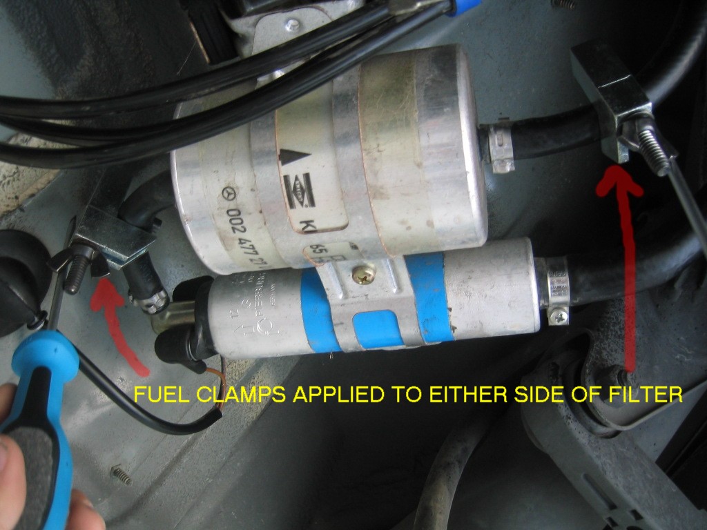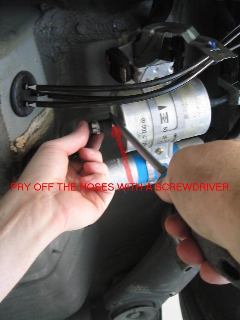 | G-AMG G-Class DIY Host Date registered: May 2006 Location: South Texas Vehicle(s): '04 G55, '80 280GE, '99 S420, '98 E320, 2011 E350 ![]() | PHOTO DIY- FUEL FILTER CHANGE An easy DIY project. Save yourself alot of $$ and do yourself. The only trick was getting the "Click"-Type reusable hose clamps off. I compressed the clamp, then flipped the "lip" off with a small screwdriver. The filter should be changed at 4yr/50,000 mile intervals. This DIY is for the 1999 S420. The usual CYA blah, blah stuff. I am not claiming any expertise. My projects are based on my interpretation of the WIS procedures. Do work at your own discretion. Edited by G-AMG 2/28/2007 12:26 AM (1.JPG) (2.JPG) (3.JPG) (4.JPG) (5.JPG) (6.JPG) (7.JPG) (8.JPG) (9.JPG) (10.JPG) (11.JPG) (12.JPG) Attachments ---------------- 1.JPG (179KB - 158 downloads) 2.JPG (147KB - 181 downloads) 3.JPG (167KB - 190 downloads) 4.JPG (155KB - 178 downloads) 5.JPG (168KB - 182 downloads) 6.JPG (127KB - 173 downloads) 7.JPG (136KB - 175 downloads) 8.JPG (136KB - 171 downloads) 9.JPG (119KB - 167 downloads) 10.JPG (175KB - 173 downloads) 11.JPG (157KB - 175 downloads) 12.JPG (172KB - 176 downloads) | ||