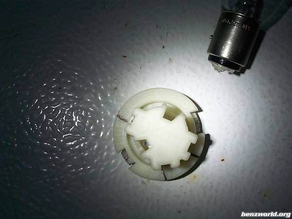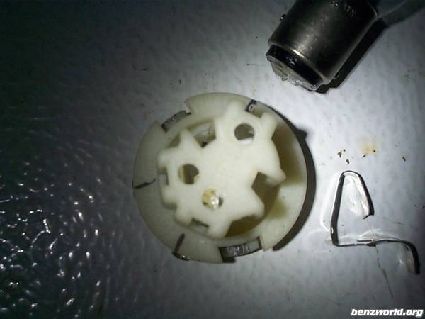 I recommend pushing them out one at a time. Maybe it's just me - but I found them amazingly easy to get mixed up. They push out easily by depressing the locking tab and pushing them up. Remove the bulb first though. It was just easier to photograph this way.