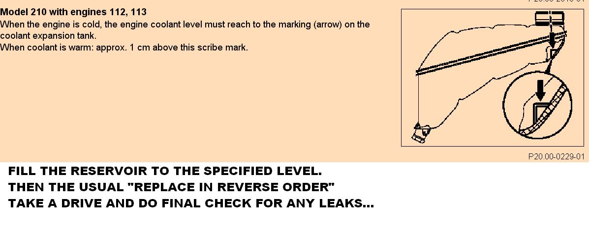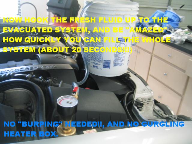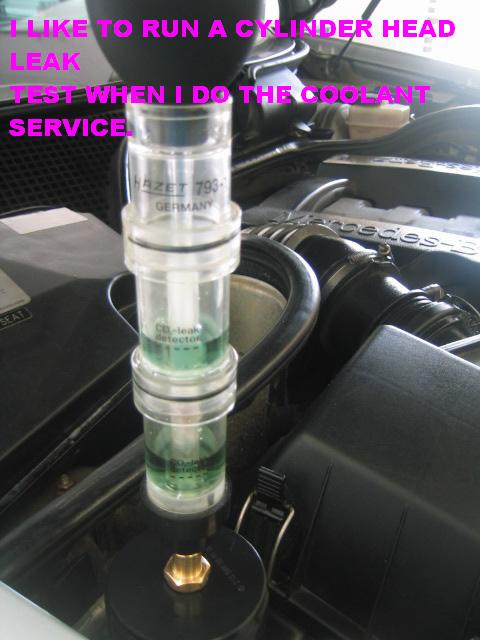 | G-AMG G-Class DIY Host Date registered: May 2006 Location: South Texas Vehicle(s): '04 G55, '80 280GE, '99 S420, '98 E320, 2011 E350 ![]() | Photo DIY- Coolant Service Greets, I know the Manual specifies "Change Coolant Every 3 years", my overly anal schedule is every "TWO" years. My friend who is the lead tech at one of the largest dealerships in the USA does this schedule on his own vehicles. Plus, the horribly hot and humid conditions where I live keeps me on the overly compulsive schedule, along with ANNUAL brake fluid changes. The following procedure is straight out of the WIS. Yes, I know "alot" of people will ding me for going through all the hassle to drain the two Crankcase drains, but this is MY REASONING: With the common "flush with fresh water" technique, how in the heck do you get the concentration correct??? You have so much "trapped" water within the block, how do you calculate how much "straight" Coolant to add.... I don't know... I guess it is the scientist in me that requires things to be exact... With the WIS method, you will ALWAYS have the correct concentration, even "if" there is a little residual in the system (ie. heater core) A few words of caution: Be EXTREMELY careful when opening the reservoir cap- Only remove when less than 90C. Also, where a face splash shield, clothing protection, and, of course, gloves. (1.JPG) (2.JPG) (3.JPG) (4.JPG) (5.JPG) (6.JPG) (7.JPG) (8.JPG) (9.JPG) (10.JPG) (11.JPG) (12.JPG) (13.JPG) (14.JPG) Attachments ---------------- 1.JPG (38KB - 178 downloads) 2.JPG (50KB - 185 downloads) 3.JPG (50KB - 179 downloads) 4.JPG (48KB - 160 downloads) 5.JPG (51KB - 182 downloads) 6.JPG (60KB - 176 downloads) 7.JPG (47KB - 171 downloads) 8.JPG (55KB - 182 downloads) 9.JPG (44KB - 169 downloads) 10.JPG (61KB - 185 downloads) 11.JPG (55KB - 179 downloads) 12.JPG (52KB - 224 downloads) 13.JPG (63KB - 179 downloads) 14.JPG (67KB - 182 downloads) | ||
