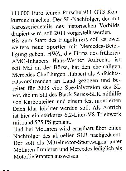 | pleubner Date registered: Apr 2006 Location: Basel, Switzerland Vehicle(s): ML270CDI Brabus-W163,SL55 AMG-R230,ML320 CDI-W164 ![]() | New Model on the Way 2011 SL Retro ? Edited by pleubner 8/29/2007 3:53 PM (Save.JPG) (Save0001.JPG) Attachments ---------------- Save.JPG (428KB - 216 downloads) Save0001.JPG (179KB - 216 downloads) | ||