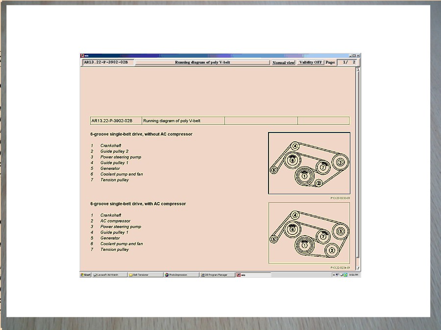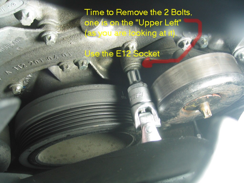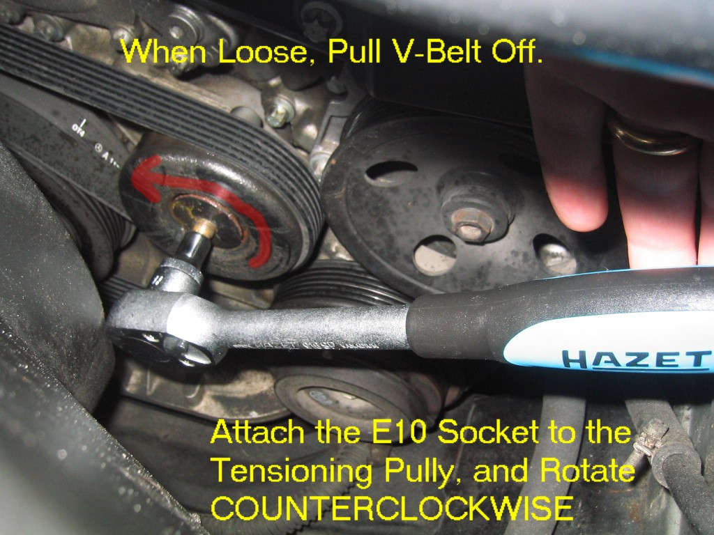 | sst Date registered: Dec 1899 Location: Vehicle(s): | RE: Photo DIY- V-Belt Tensioning Pully Replacement G-AMG - 5/20/2007 11:53 PM Another Less Than Interesting Post, but Since I was Doing the Work Anyway...... My V-Belt Tensioner was DRIVING ME NUTS!! My "E" Einspritzung (Fuel Injected) was Sounding More Like a DIESEL, Rattling Up a Storm! I Went Through AutoHausAZ to get a replacement (I Should have paid a little more and gone thru Caliber), but found the part had a funky T50 TAMPER PROOF fastener on it to rotate the device. Bad Idea. Anyway, if you are getting the "rattles" then it is an easy change!! wow amazing set of tools, may i ask where do u get these hand tools from dealer? The usual CYA blah, blah stuff. I am not claiming any expertise. My projects are based on my interpretation of the WIS procedures. Do work at your own discretion | ||