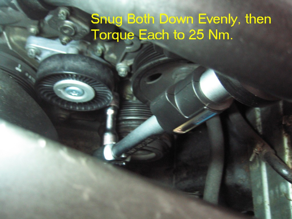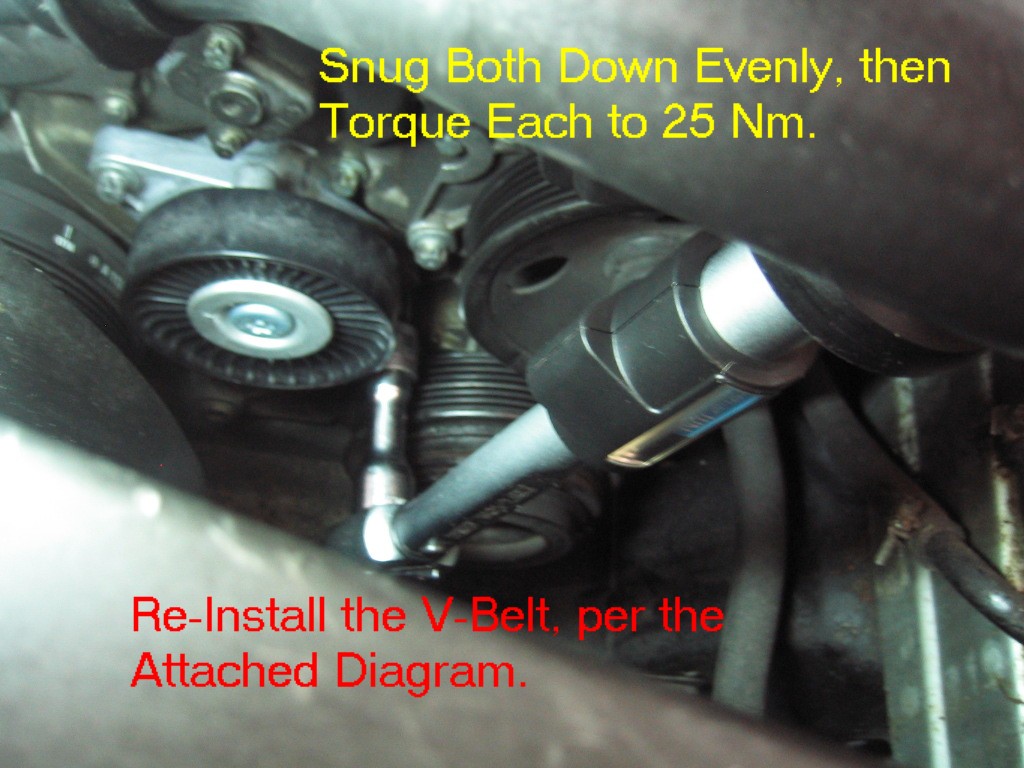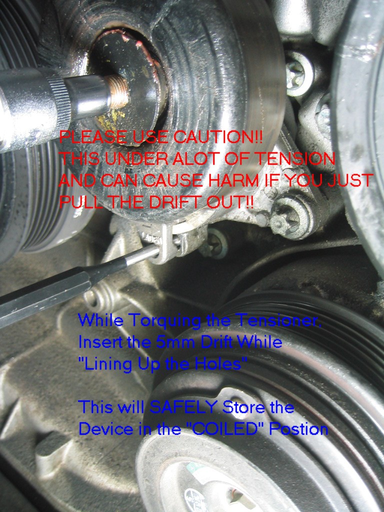 | G-AMG G-Class DIY Host Date registered: May 2006 Location: South Texas Vehicle(s): '04 G55, '80 280GE, '99 S420, '98 E320, 2011 E350 ![]() | RE: Photo DIY- V-Belt Tensioning Pully Replacement Folks, Please forgive me, but I been advised the CORRECTED method of Turning the "Updated" version of the Belt Tensioning device is as follows: http://www.pointedthree.com/disc/forums/showthread.php?tid=7517&pos... | ||