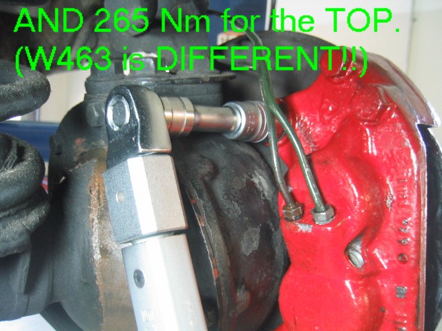 | G-AMG G-Class DIY Host Date registered: May 2006 Location: South Texas Vehicle(s): '04 G55, '80 280GE, '99 S420, '98 E320, 2011 E350 ![]() | RE: Photo DIY- Front Caliper Rebuild- W460 Perrot Yes, sorry Dutch, Pic 27 was referring to the RIGHT HAND CALIPER. The Workshop Manual states: "For the Righthand side [caliper], use a commercial grade socket, shortened by 5mm". The anatomy on the right is slightly different than the left. But, having a 3" wobble extension gave the few degrees of angulation needed to negotiate the obstructions. I was not in the mood to destroy a nice socket....... | ||