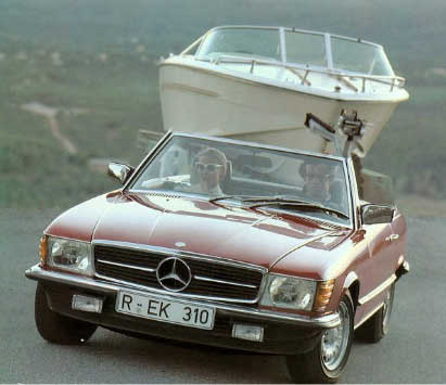 it a mercedes thing. u can understand it with models such as the GL but an SL. you wait, next years McLaren F1 car will be shown off with a nice caravan in tow!