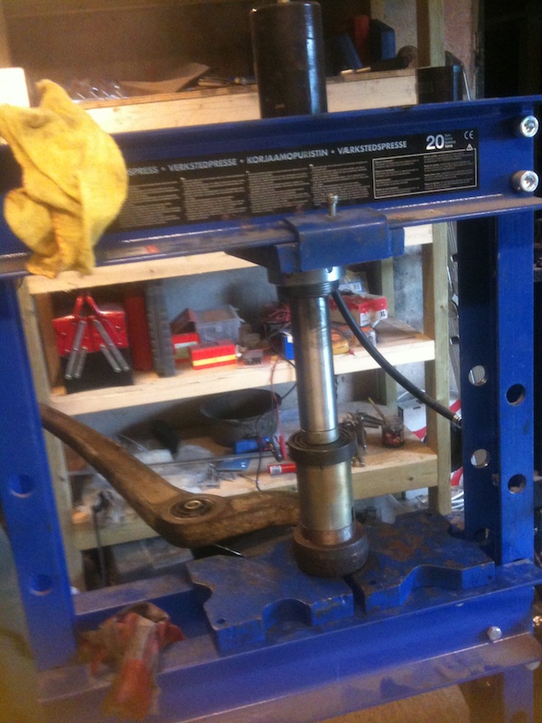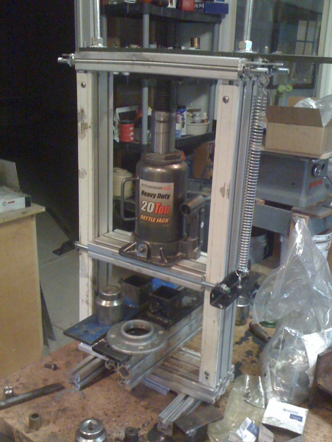 | zimm Elite Veteran Date registered: Feb 2010 Location: pittsburgh Vehicle(s): lx470, 76 fj40, 72fj40, 96 gelandewagen g320. Posts: 788 ![]() | RE: R&R trailing arm Bushings a 20 ton press made from Al extrusions? youre gonna poke yer eye out with that. | ||