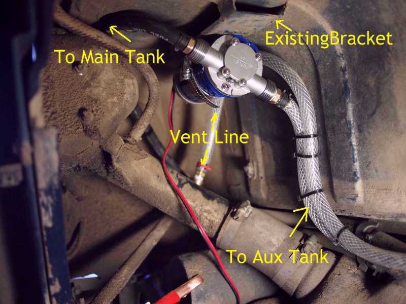| AlanMcR Expert Date registered: Apr 2006 Location: US, CA, Los Altos Vehicle(s): G300DT E300DT 230SL Posts: 3500 ![]() | RE: Front Runner Auxiliary fuel tank I bought a bi-directional vane pump off of eBay for cheap. Works great. It is mounted with hose clamps onto the same feature that Front Runner uses. Given noise transmitted by the direct-to-body mounting, you cannot miss the fact that the pump is running. Also the sound of the pump running dry is easy to detect. The pump isn't supposed to run dry for very long. For short periods, diesel is a nice lubricant. For the breather, I T-ed into the factory breather hose at the highest point up by the fuel filler. That way I know it is full when fuel starts spitting out of the breather vent that is visible a few cm down the filler on the left side. Their filling system is actually pretty clever. Much easier than what I did. Instead, I pulled the tank sender and re-purposed the secondary fuel pipe that is normally feeding the park heater. After using this for a while, I found that the narrow pipe filled too slowly. I have since rebuilt the sender with a larger pipe made from malleable copper. This moves a lot of fuel. I used clear braid reinforced hose, which was great for diagnosing initial problems. Dirt and flying debris has rendered the hoses more translucent than clear, so the diagnosis benefit is gone now. One final thing. Since both ends of the fill system are dip tubes submerged into fuel tanks, there is a possibility of siphoning from the higher tank level to the lower. To prevent this, there is a tiny (dental drill) vacuum breaker hole at the very top of the dip tube in the extended range tank. This results in air bubbles being sucked in with the fuel when transferring back from the extended range tank. This probably slows it down a bit, but hasn't really been noticeable. The drawing below was my initial starting point. The picture of the pump has the vent line in a misleading position. I don't think it had been connected up yet.