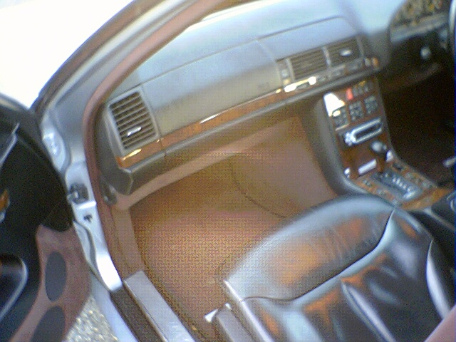 | 1996_S500 Date registered: Dec 1899 Location: Vehicle(s): | RE: Some interior pics. NZ Benz - 8/2/2006 7:06 PM My floor mats have a little metal plate on them that has the star and says "mercedes benz" It's raining outside so I took a quick pic all the colour is f'ed up but you can see the metal thing. Interesting, They might have been after market? Because the ones I've seen, even with right hand drive W140's, have the embroided Mercedes-Benz Stars in them. | ||