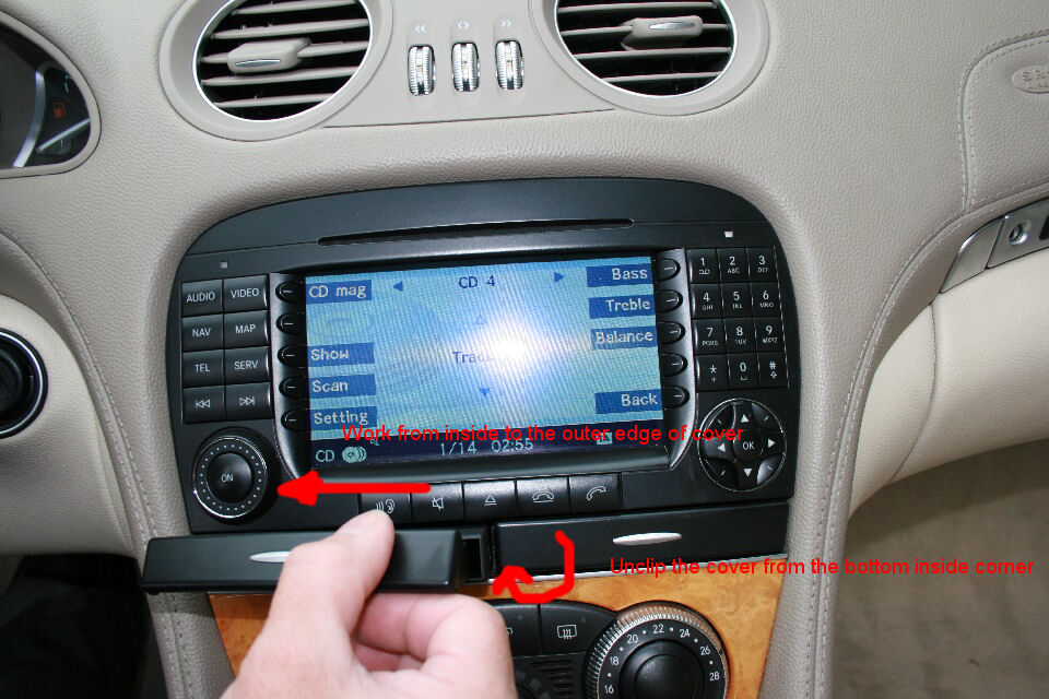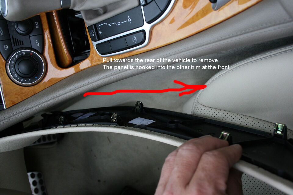| pleubner Date registered: Apr 2006 Location: Basel, Switzerland Vehicle(s): ML270CDI Brabus-W163,SL55 AMG-R230,ML320 CDI-W164 ![]() | 2. Remove cup holder covers This step is a little awkward, but with a little guidance shouln't be a problem. Essentiall the covers are just clipped on. It is best to pry off the cover by applying pressure from the inside bottom corner , then transversing along the bottom edge. The bottom edge seems to be the side that gives way the easiest. For the other cup holder I make my life a little easier by using my "swiss" accessoire Don't take the cupholder all the way out. Note the position of my fingers : thumb & bent index finger!. The reason you need to remove the cup holder covers is that the center console panel has a "lip" that goes underneath, and makes it very hard to remove given the angle that the panel must come out. Edited by pleubner 8/30/2007 3:25 AM (02 - CupHolderCoverRemoval - 01.jpg) (02 - CupHolderCoverRemoval - 02.jpg) (02 - CupHolderCoverRemoval - 03a.jpg) (02 - CupHolderCoverRemoval - 04.jpg) (02 - CupHolderCoverRemoval - 05.jpg) (02 - CupHolderCoverRemoval - 07.jpg) (02 - CupHolderCoverRemoval - 08.jpg) (02 - CupHolderCoverRemoval - 09.jpg) (02 - CupHolderCoverRemoval - 10.jpg) (02 - CupHolderCoverRemoval - 11.jpg) (02 - CupHolderCoverRemoval - 12.jpg) (02 - CupHolderCoverRemoval - 13.jpg) (02 - CupHolderCoverRemoval - 14.jpg) (02 - CupHolderCoverRemoval - 14a.jpg) Attachments ---------------- 02 - CupHolderCoverRemoval - 01.jpg (236KB - 390 downloads) 02 - CupHolderCoverRemoval - 02.jpg (240KB - 320 downloads) 02 - CupHolderCoverRemoval - 03a.jpg (137KB - 327 downloads) 02 - CupHolderCoverRemoval - 04.jpg (242KB - 292 downloads) 02 - CupHolderCoverRemoval - 05.jpg (191KB - 324 downloads) 02 - CupHolderCoverRemoval - 07.jpg (183KB - 311 downloads) 02 - CupHolderCoverRemoval - 08.jpg (251KB - 322 downloads) 02 - CupHolderCoverRemoval - 09.jpg (178KB - 318 downloads) 02 - CupHolderCoverRemoval - 10.jpg (224KB - 300 downloads) 02 - CupHolderCoverRemoval - 11.jpg (204KB - 299 downloads) 02 - CupHolderCoverRemoval - 12.jpg (170KB - 302 downloads) 02 - CupHolderCoverRemoval - 13.jpg (117KB - 294 downloads) 02 - CupHolderCoverRemoval - 14.jpg (213KB - 302 downloads) 02 - CupHolderCoverRemoval - 14a.jpg (115KB - 308 downloads) | ||