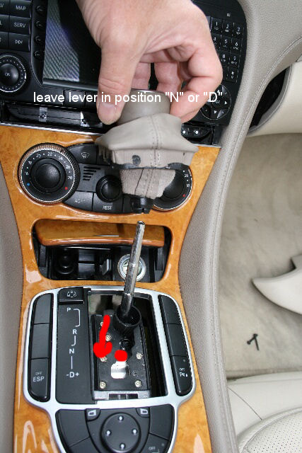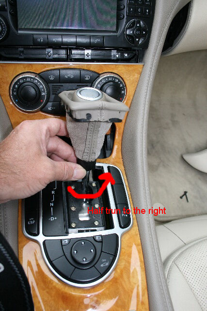 | pleubner Date registered: Apr 2006 Location: Basel, Switzerland Vehicle(s): ML270CDI Brabus-W163,SL55 AMG-R230,ML320 CDI-W164 ![]() | 3. Remove Gear Selector knob Pry up the covering using your fingers. Twist the black lock ring on the bottom of the knob to the right remove knob by pulling strainght upwards (I gave the knob a little twist left & right as I pulled upward) NOTE: Due to the angle at which the panel needs to be removed it is best to have the lever remaining in position "D" or "N". The position "P" makes the removal of the panel impossible (03 - GrearSelectorRemoval - 01.jpg) (03 - GrearSelectorRemoval - 03.jpg) (03 - GrearSelectorRemoval - 04.jpg) (03 - GrearSelectorRemoval - 02a.jpg) (03 - GrearSelectorRemoval - 04a.jpg) Attachments ---------------- 03 - GrearSelectorRemoval - 01.jpg (239KB - 343 downloads) 03 - GrearSelectorRemoval - 03.jpg (120KB - 315 downloads) 03 - GrearSelectorRemoval - 04.jpg (127KB - 324 downloads) 03 - GrearSelectorRemoval - 02a.jpg (70KB - 316 downloads) 03 - GrearSelectorRemoval - 04a.jpg (70KB - 320 downloads) | ||